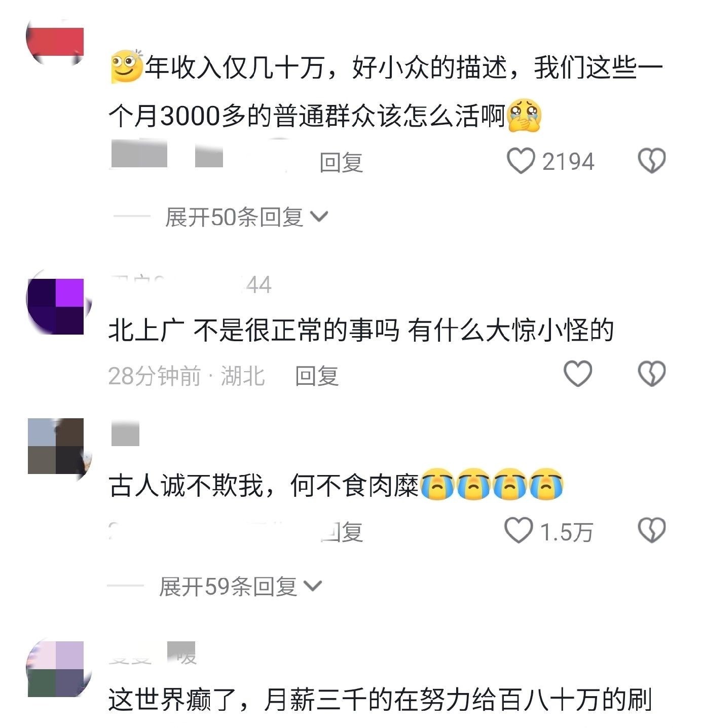 网友纷纷质疑:“这不是哭穷,是顶着苦难面具的炫富”、“普通人年入几万也能养家糊口,你说80万不够花?我们真的不懂你的苦。”