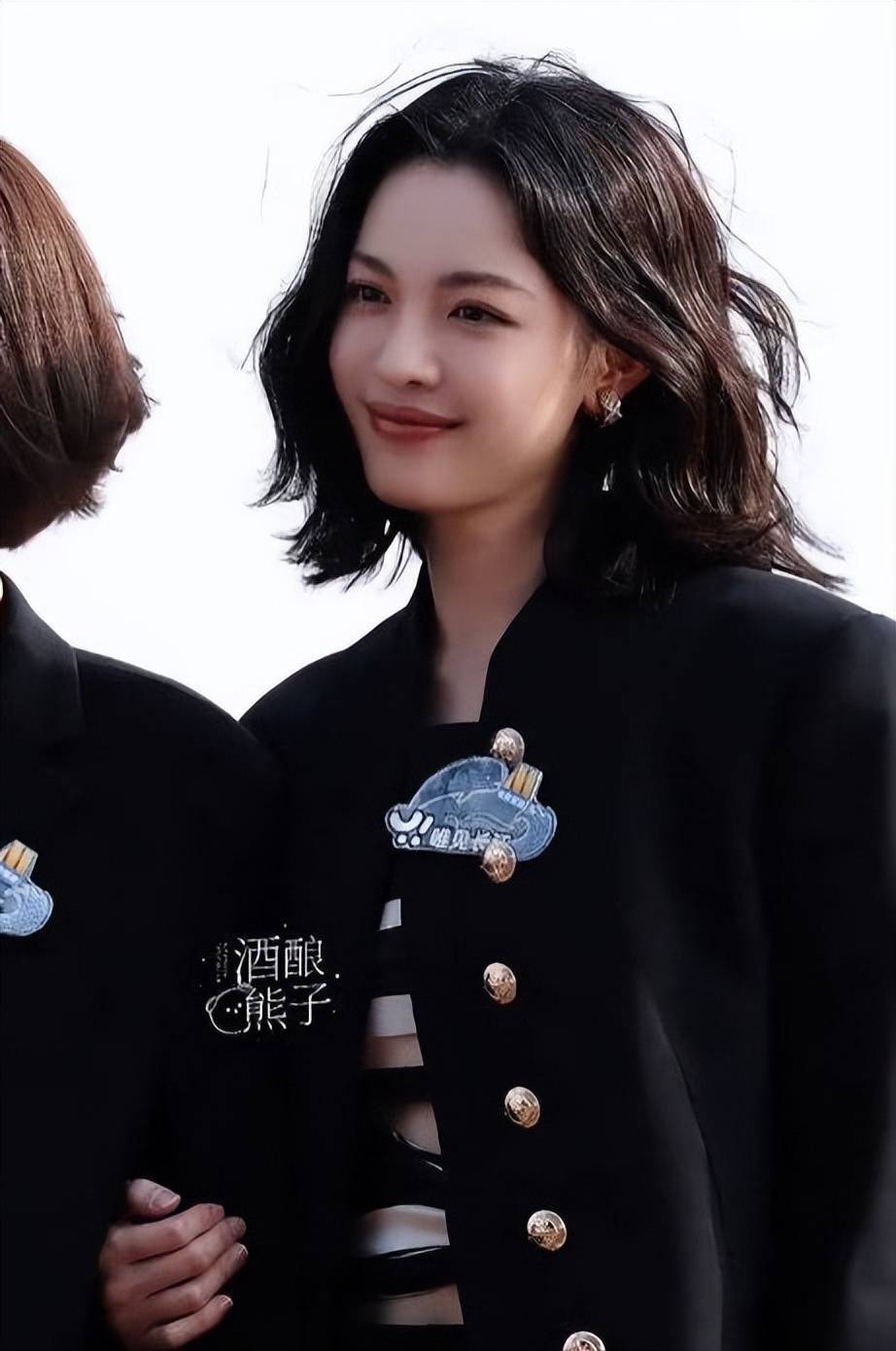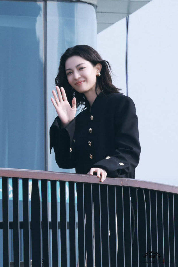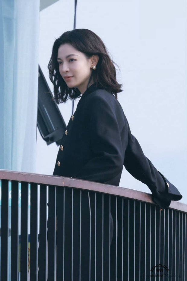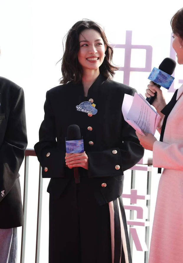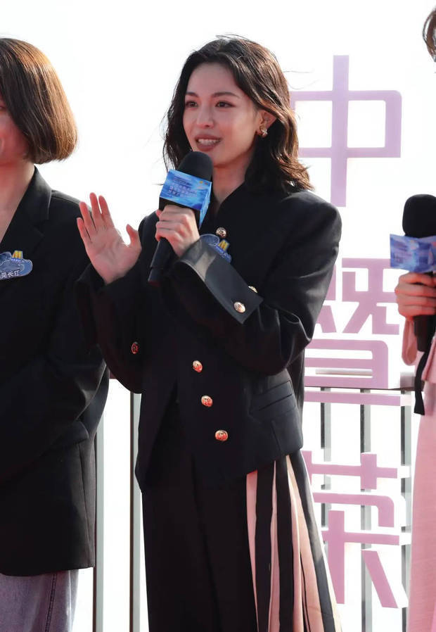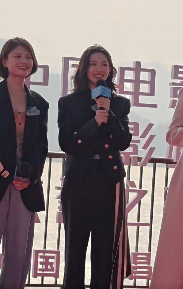 钟楚曦一身黑色套装又美又飒。